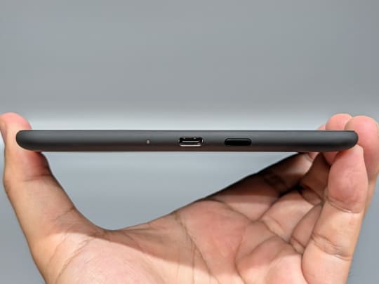 画面サイズは7型。前述の「Kindle Colorsoft」と同じくカラーE Inkパネル「Kaleido 3」を採用することから、モノクロ300ppi、カラー150ppiという解像度は共通している。一方で本製品はページめくりボタンを搭載しており、タッチやスワイプ以外に物理ボタンでのページめくりも行える。手袋をしていてタッチが反応しない場合や、指先にケガをしているような場合に便利だ。