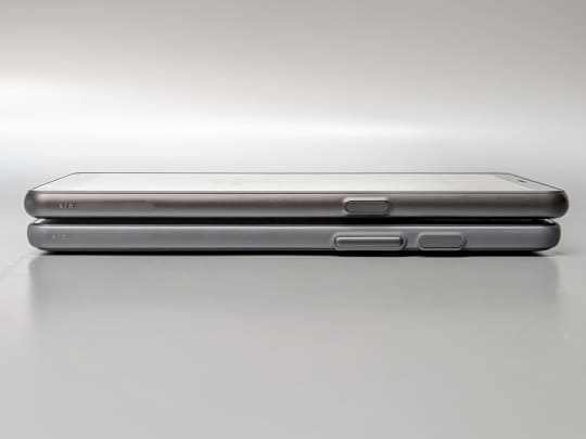 では実際に使ってみよう。ボディは最初に持った時は一瞬軽く感じるが、これは樹脂製ゆえ感覚的にそう感じるだけで、実際の重さは173g/171gとあって一般的なスマホとそう違いはない。iPhoneに例えると標準モデルとほぼ同等、Proモデルよりは軽いが、Airほどではない、という表現になる。