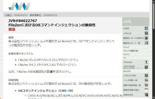 - 「FileZen」にOSコマンドインジェクションのゼロデイ脆弱性