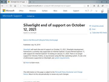 「Flash Player」とは異なり、「Silverlight」ではシステムから強制削除されることはない。コンテンツの実行にもとくに制限は課されないようで、「Internet Explorer 11」や「Microsoft Edge」の「IE モード」で引き続き動作するとされている。