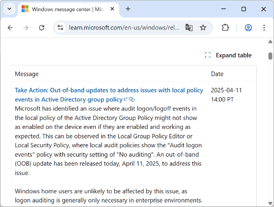 なお、今回のOOBパッチは以前にリリースされたパッチの内容も含んだ「累積的」なものなので、これがあれば2025年4月のセキュリティ更新プログラムなど、過去のパッチをわざわざあてる必要はない。2025年4月のセキュリティ更新プログラムをまだ適用しておらず、「Active Directory」グループポリシーを使用している環境に対し、同社はこの定例外パッチを適用するよう呼び掛けている。
