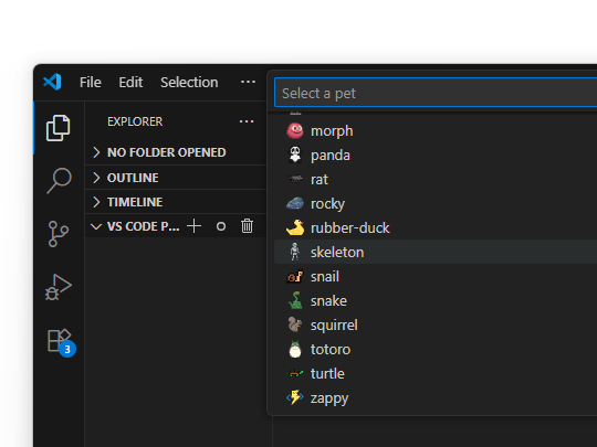 「Visual Studio Code」でペットを飼える拡張機能に「リス」と「骸骨」が追加
