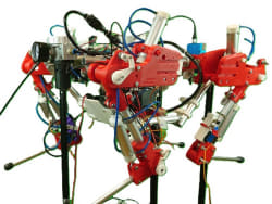 エアシリンダーで動作する4本足のロボットを開発