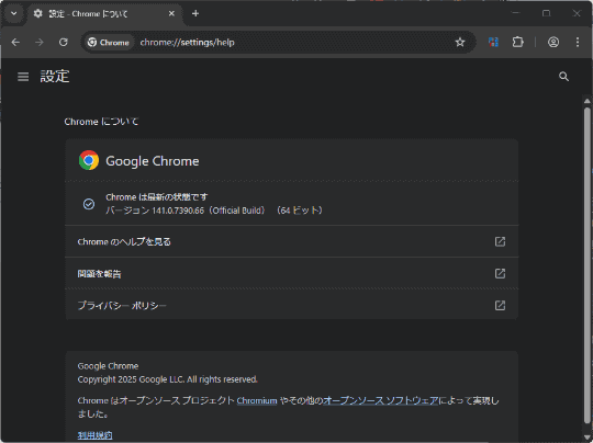 米Googleは10月7日(現地時間)、デスクトップ向け「Google Chrome」の安定(Stable)チャネルをアップデートした。現在、Windows/Mac環境にはv141.0.7390.65/.66が、Linux環境にはv141.0.7390.65が展開中だ。