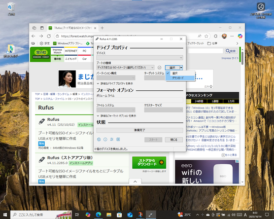 当面の回避策としては、代わりにISOイメージファイルをダウンロードしてインストールメディアを作成する方法が案内されている。専用のサードパーティーツール「Rufus」を利用するのもおすすめだ。