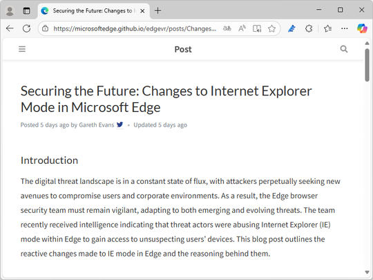 米Microsoftは10月8日(現地時間)、「Internet Explorer モード」の仕様に変更を加える方針を明らかにした。いくつかの制限が追加される。