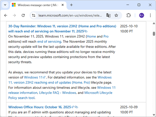 あと30日を切る ~Windows 11 バージョン 23H2 Home/Proのサービスが終了へ