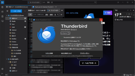 オープンソースのメールソフト「Thunderbird」v144.0.1が、10月16日(米国時間)にリリースされた。