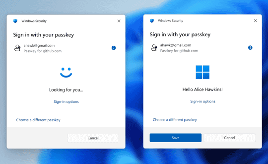 さらに、Windows Helloのデザインも改良され、Windowsへのサインインに最適な認証方法が優先表示されるようになる。パスキーの認証画面も認証オプションを簡単に切り替えられるデザインへ刷新される。