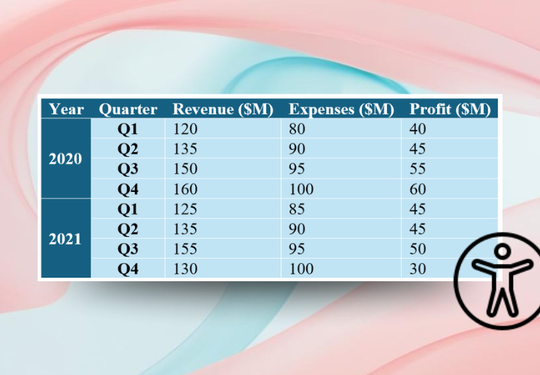 - 結合されたセル:最初の行・列の結合であれば、スクリーンリーダーは正しくデータと関連付けて読み上げるため、それに合わせてアクセシビリティアラートを表示しないように