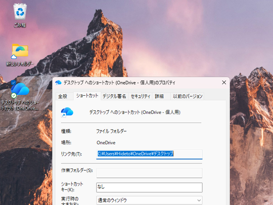 - 自分の PC 上のみ:デスクトップフォルダーを「OneDrive」フォルダー(C:¥Users¥<ユーザー名>¥OneDrive¥Desktop)から既定のローカルフォルダー(C:¥Users¥<ユーザー名>¥Desktop)へ戻す。「OneDrive」フォルダーから(既定の)新しいローカルデスクトップフォルダーへのファイル移動も行われる