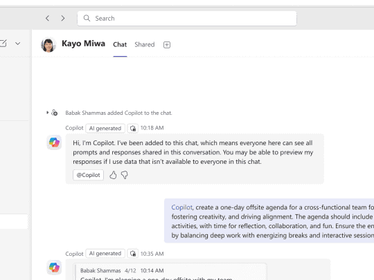 プライベートな1対1チャット以外でも「Copilot」を活用できる
