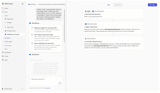 同社の自動化ツール「Power Automate」と同様、ノンコーディングで行えるのは同じだが、自然言語で「Copilot」と対話しながらフローを作成できるのはAIエージェントならではの魅力といえるだろう。アルゴリズムを組むことに慣れないユーザーでも扱える。