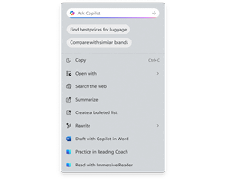 - 「Copilot+ PC」専用のAI機能 「Click to Do」(クリックで実行)で多くの機能追加。プロンプトボックス、テキストの翻訳、単位の変換、2本指ジェスチャーによる起動、選択方法の拡充、テーブル(表)の検出、「Microsoft 365」のプロフィールカード対応などを導入