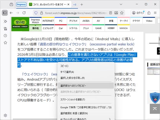 - 選択部分へのリンクをコピーする右クリックメニューコマンド