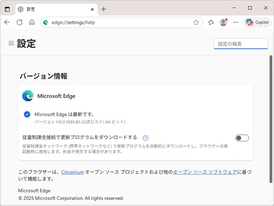 米Microsoftは11月13日(現地時間)、デスクトップ向け「Microsoft Edge」v142.0.3595.80を安定(Stable)チャネルでリリースした。本バージョンは、原則週一回実施されているセキュリティアップデート。ベースとなっている「Chromium」由来の脆弱性が1件修正されている。