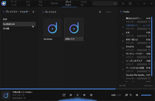 そのほかにも最新版では、曲間に無音を加えず切り替えるギャップレス再生に対応。内蔵のプレイリストをフォルダーで整理できる機能や、可能であればオンライン・オフラインから歌詞データを取得して表示する機能が追加された。