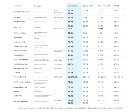 とくに強化推論モード「Gemini 3 Deep Think」(数週間以内に「Google AI Ultra」ユーザーへ提供)は「Gemini 3」の推論能力とマルチモーダル理解力を飛躍的に向上させており、より複雑な問題を解決できるという。