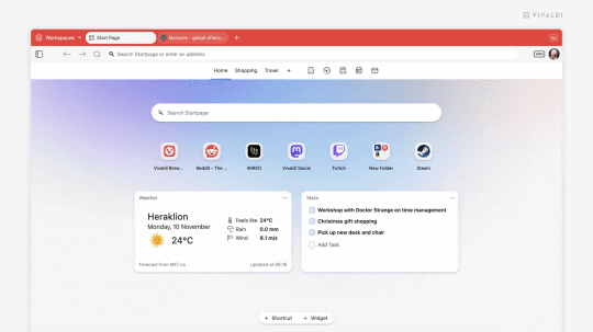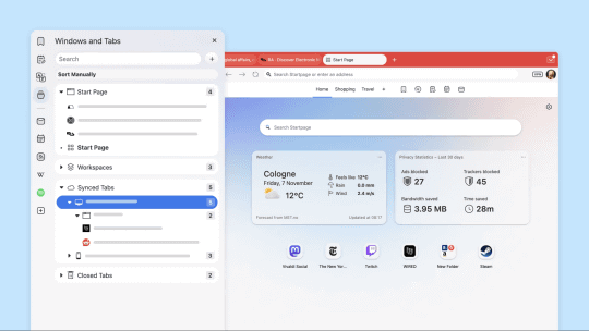 ノルウェーのVivaldi Technologiesは11月13日(日本時間)、デスクトップ版Webブラウザー「Vivaldi 7.7」をリリースした。デバイス間で行うタブ移動やスタートページの強化などが施されている。
