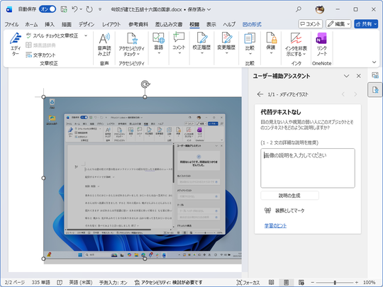 「Word」「PowerPoint」の画像にAIが代替テキストをつける機能、改善のため仕様変更