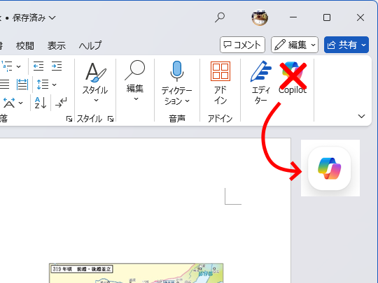 「Word」「Excel」「PowerPoint」の[Copilot]ボタンがお引越しへ