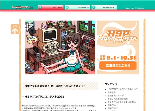 なお、このほかの受賞作品は「HSPプログラムコンテスト2025最終選考結果ページ」で公開されている。受賞作品を含む全てのコンテスト応募作品はHSPの公式サイトから誰でも無料でダウンロードでき、遊ぶことが可能だ。