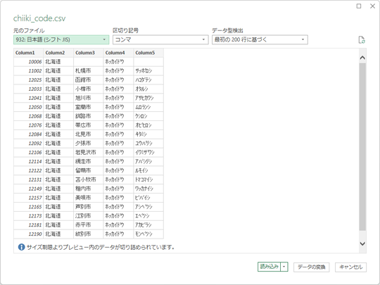 データソースを選択すると、おなじみの「Power Query」インポートダイアログが表示される。ここから先の操作に変更はない。