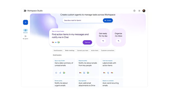 「Workspace Studio」は今後数週間をかけて、すべてのビジネスおよびエンタープライズの「Workspace」プランに展開されるとのこと。