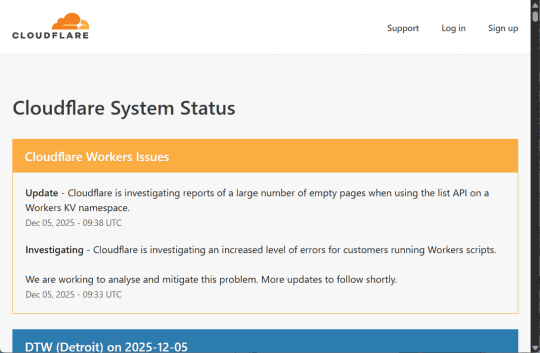 Web高速化・セキュリティ強化サービス「Cloudflare」のグローバルネットワークで12月5日の18時33分ごろから障害が発生している。「Cloudflare」は先月18日にも障害が発生していた。