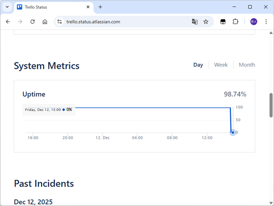 【2025年12月12日16時35分編集部追記】 12月12日16時28分ごろ「Trello」のステータスページが更新され、「Trello」のサービスが復旧したことがアナウンスされた。編集部でも「Trello」を正常に利用できることを確認している。