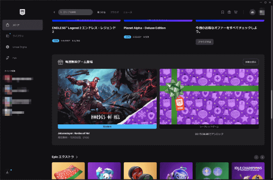 「Epic Games Store」無料ゲーム配布が毎日更新に。年末年始恒例イベントか?