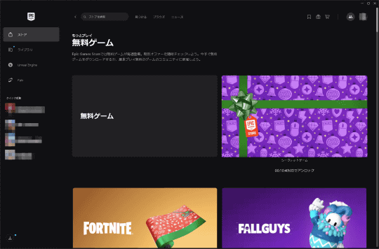 ところが本日12月25日、今日の無料配布タイトルを確認しようと「Epic Games」アプリを開いたところ、いつもは無料ゲームが置かれている場所は『毎週無料ゲーム登場』と書かれた枠があるだけの状態。