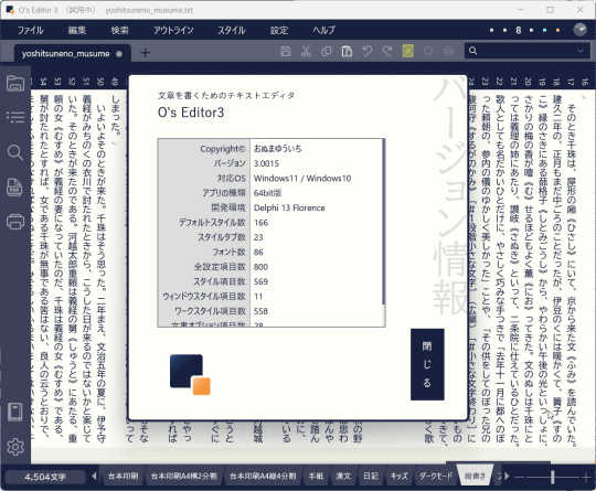 老舗の縦書きテキストエディター「O's Editor」が26年ぶりにメジャーバージョンアップ
