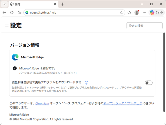 米Microsoftは1月8日(現地時間)、デスクトップ向け「Microsoft Edge」v143.0.3650.139 を安定(Stable)チャネルでリリースした。まだリリースノートは公開されていないが、「Edge」ブラウザーのベースとなっている「Chromium」で発見された脆弱性が1件修正されているものと思われる。