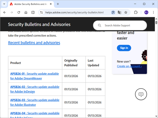 - APSB26-01:Adobe Dreamweaver(5件、Critical)