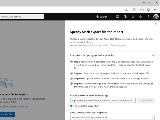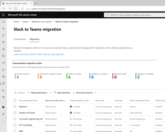 チャネルやメッセージ、添付ファイルなどを簡単に移行できる