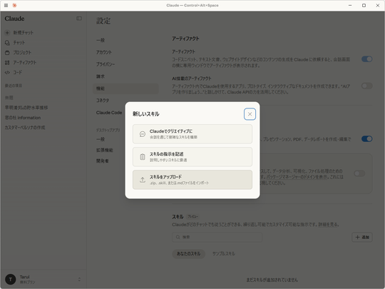 スキルは他のユーザーと共有することも可能(「エージェントスキル」(Agent Skills)として標準化されているので、他のAIプラットフォームでも再利用できる)。また、「Claude」は必要なスキルを必要な時だけ読み込むので、システムプロンプトとして記述するよりもトークン消費を抑制できるというメリットもある。