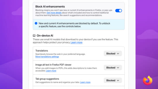 Mozillaは2月2日、2月24日に公開予定のデスクトップ向け「Firefox」の 次期バージョン「Firefox 148」に搭載される新機能を予告した。新たにAI機能をコントロールする設定が追加され、生成AI機能を一括でブロックすることが可能になるという。