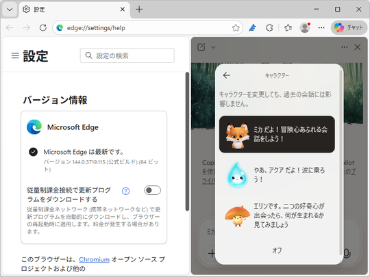 同社によると本機能は廃止されるわけではなく、新しい日本語入力システム「Copilot Keyboard」で引き続き提供されるとのこと。「Copilot」と「Copilot Keyboard」の両方に実装されていたキャラクター機能が、「Copilot Keyboard」へ集約された格好だ。同社はこの変更を『より自然で、より日常的に使える形へ進化させるための統合』『キャラクターを「会話相手」から「パートナー」へ進化させるため』だとしている。