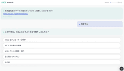 アンケートはAIチャット型オンラインアンケートシステム「AIQ」が採用されている。従来のフォーム入力とは異なり、対話形式でテンポよく回答できることが特徴。
