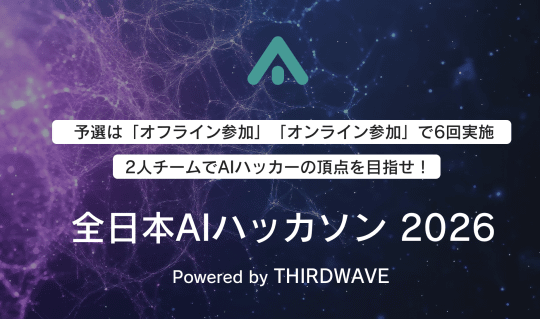 (株)サードウェーブは、11月に開催されるAI技術をテーマにしたハッカソン「全日本AIハッカソン 2026 Powered by THIRDWAVE」に向けて、予選2ndラウンドを4月25日にオンラインで実施する。現在、参加者を募集しており、締切は3月15日。
