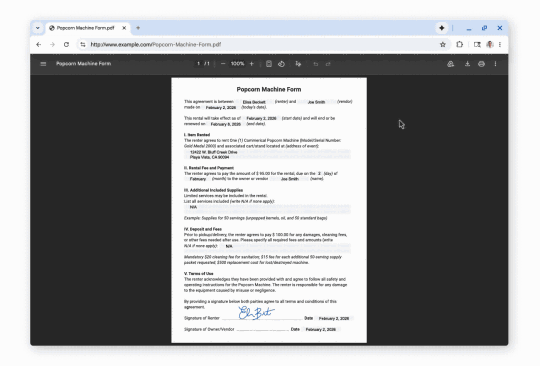 ページ上部の[描画]ボタンをクリックすると、マウスのドラッグで自由に線を描画可能。ペンと蛍光マーカーを選択できるほか、太さ、色を選べる。簡単な手書きの署名やメモを追加するといった使い方が可能だ。ダウンロードする際は、注釈前の状態または注釈後の状態から選べる。