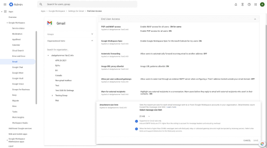 なお、「Google Workspace」の管理者は、添付ファイルの容量制限を最大容量を超えない範囲で変更することが可能だ。