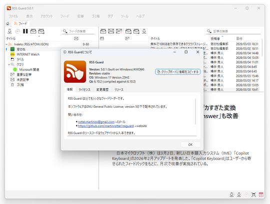 クロスプラットフォーム対応の軽量フィードリーダー「RSS Guard」が2月26日(日本時間)、v5.0.0へとアップデートされた。2021年9月以来、約4年半ぶりのメジャーバージョンアップとなる。