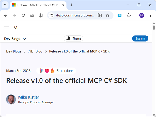 Microsoft、「MCP C# SDK」v1.0をリリース ~.NET上でMCPサーバー・クライアント構築を支援