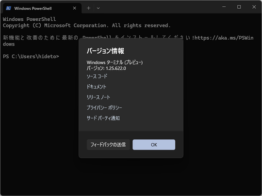「Windows Terminal Preview 1.25」における主な変更は、以下の通り。
