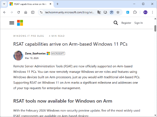 米Microsoftは3月10日(現地時間)、「Remote Server Administration Tools」(RSAT)がArmベースのWindows 11デバイスで公式サポートされたと発表した。x64デバイスと同様、ARM64デバイスでも「Windows Server」の各種ロールや機能をリモート管理できるようになる。