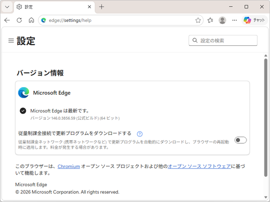 米Microsoftは2月13日(現地時間)、デスクトップ向け「Microsoft Edge」v146.0.3856.59を安定(Stable)チャネルでリリースした。「Edge 146」における主な変更は、以下の通り。