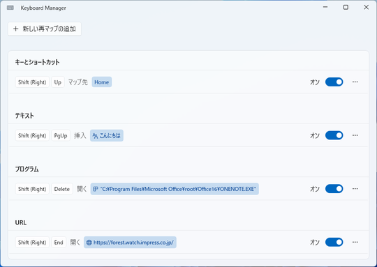 まず、キーを入れ替えるユーティリティ「Keyboard Manager」に新しいキーマップエディターが追加された。このエディターはUIライブラリ「WinUI 3」で一から再構築されており、以下のキーカスタマイズを単一のウィンドウで行える。