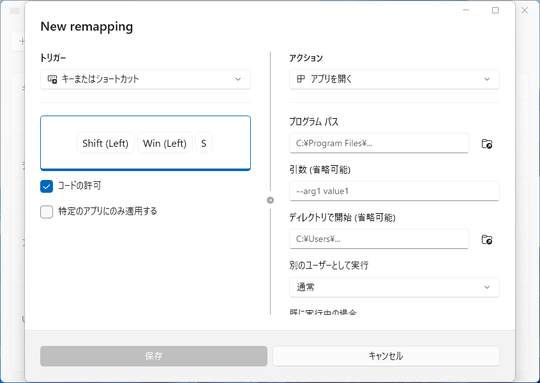 - キー入力を他のキーやショートカットキーへ入れ替え